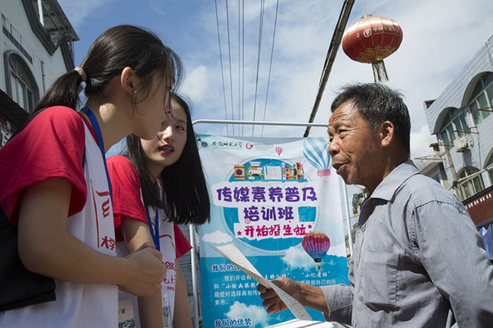 7月17日下午5时30分,bat365在线中国登录入口赴休宁“调查乡村振兴的徽州样本”国情社情观察实践团队的一项重头工作——传媒素养普及培训班招生工作顺利开展。
