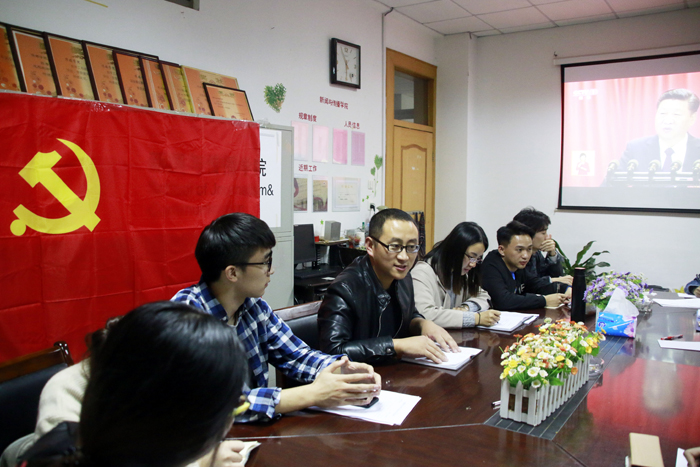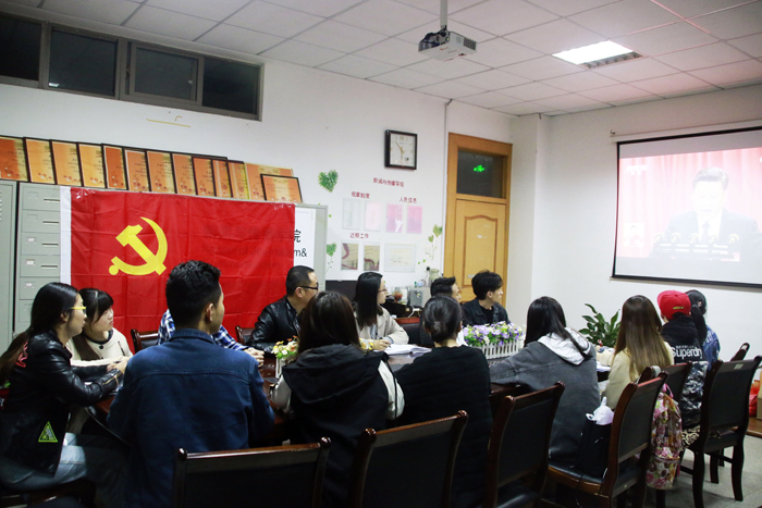 10月18日上午9时,中国共产党第十九次全国代表大会在人民大会堂开幕。在bat365在线中国登录入口2015级本科生党支部书记孙文、组织委员余梦雅老师、以及研究生支教团成员张书朋的带领下,支部全体学生党员于学院三楼会议室组织收看十九大开幕会盛况,通过观看报告视频,共同学习了习近平总书记的报告。