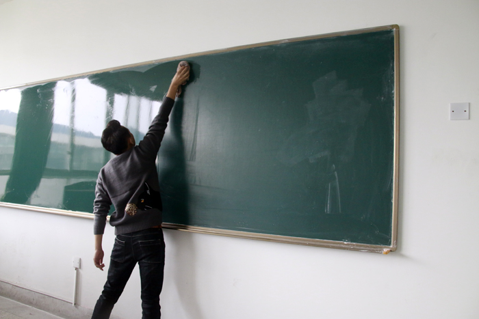 大家分工明确,有条不紊。擦洗黑板、整理讲台、清除课桌上的小广告,15级本科生党支部的全体成员都积极参与。有人负责整理桌椅,有人负责清理抽屉内的垃圾,还有人负责扫地,不放过一个角落,一块垃圾。从物品摆放到地面清洁,全体学生党员发扬“不怕脏,不怕累”的精神,充分发挥了学生党员的模范带头作用。