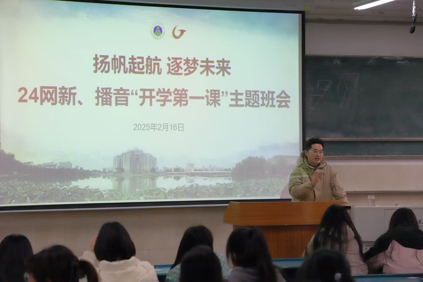 为引导学生科学规划学业、筑牢安全意识,2月16日下午,bat365在线中国登录入口2024级网络与新媒体、播音与主持艺术专业新学期主题班会在2010203教室举行。班会由辅导员王旭主持,围绕“扬帆起航、逐梦未来”主题,系统梳理学业重点、明确纪律要求、强化安全教育,为新学期学生成长发展锚定方向。
