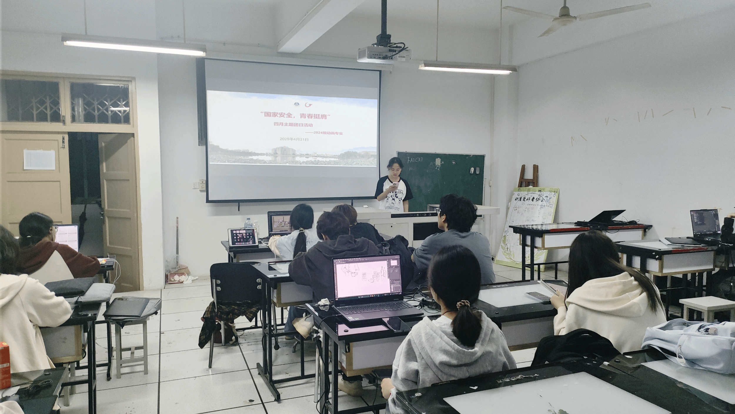 在动画专业的主题团日活动中,团支书通过PPT展示、视频播放,介绍全民国家安全教育日的背景、意义,解读总体国家安全观内涵,涉及政治、国土、军事等多领域。通过对真实案例的分析,同学们意识到国家安全与个人紧密相连。在互动环节,同学们围绕“日常生活中如何维护国家安全”这个问题展开了热烈的讨论。有的同学提出我们要增强网络安全意识,不泄露个人及国家机密;也有同学表示在文化交流中我们要坚守文化自信,抵御不良文化。现场氛围非常活跃,大家提出了诸多建设性想法。