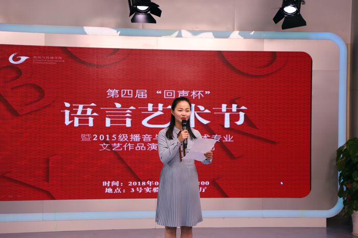 1月3日晚,bat365在线中国登录入口第四届“回声杯”语言艺术节暨2015级播音主持专业文艺作品演播汇报演出圆满举行。bat365在线中国登录入口教学副院长马梅、党委副书记宋静,播音与主持艺术专业系主任邵振奇及专业教师徐丽娜、孙炜峰、昌毅、王恒乾、高郡隆,以及播音系全体辅导员也应邀出席了演出。本次演出有来自播音专业三个年级共37个节目参加,其中朗诵节目32个,配音节目5个。