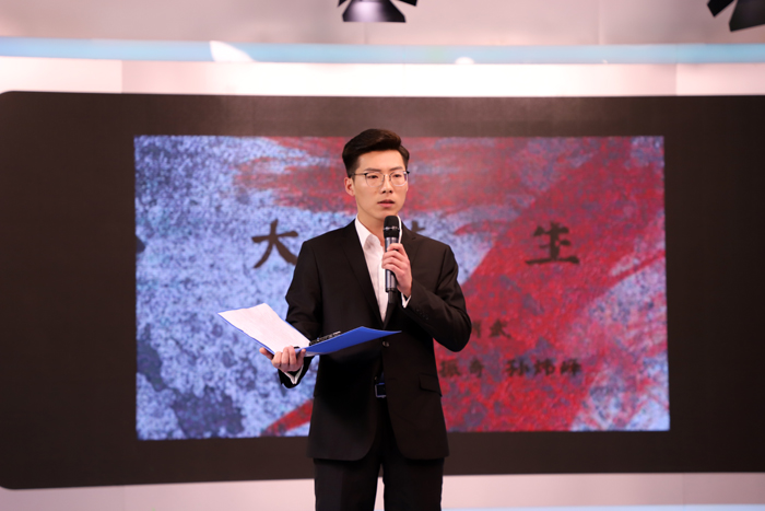 演出结束后,邵振奇老师作了点评讲话。他充分肯定了播音系同学们的朗诵水平,他讲到,回声杯期末汇报见证了2015级每位同学的成长,他看到了每一位同学的进步。最后他还给播音师生送去新年祝福,希望大家在新的一年里能以更好的姿态迎接新的挑战,绽放最美青春。