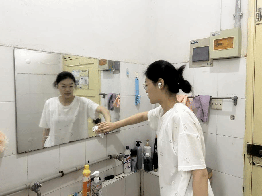 同学们对寝室和教室进行了全面的卫生清扫。同学们认真清理寝室卫生死角,擦拭教室桌椅、清扫地面,确保每一个角落都干净整洁。通过这些劳动,同学们深刻体会到劳动带来的成就感,进一步强化了“以劳树德、以劳立身”的实践意识。