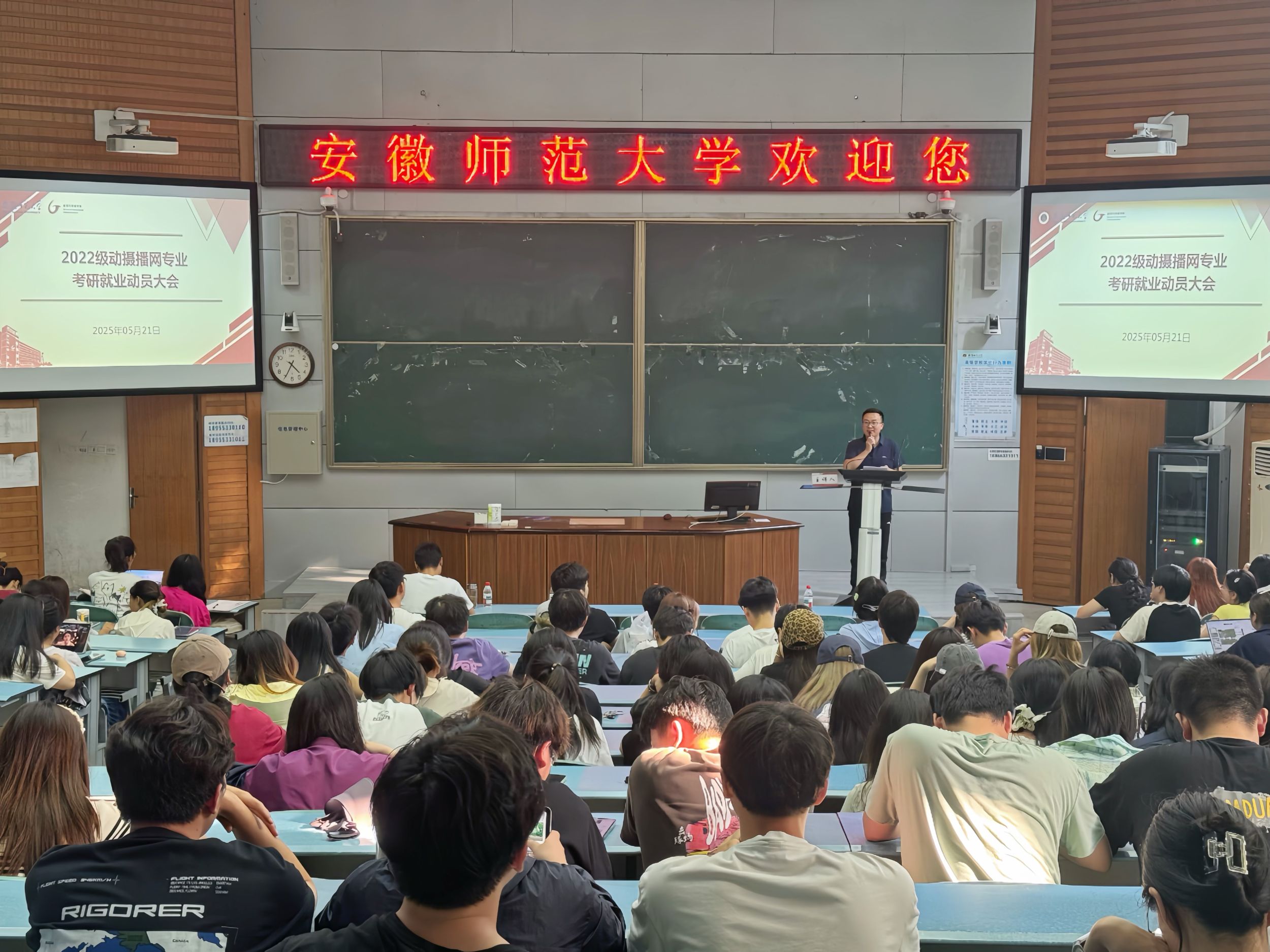 本网讯(文/江丹扬 图/何曼婧)为深入落实大学生护航行动计划,助力2022级新传学子更好地规划未来考研、就业方向,2025年5月21日下午,bat365在线中国登录入口于行知楼2010105顺利召开2022级考研就业动员大会。bat365在线中国登录入口2022级全体同学按专业分批参与,学院党委副书记吴青山、辅导员马星宇进行宣讲,会议由各专业辅导员主持。