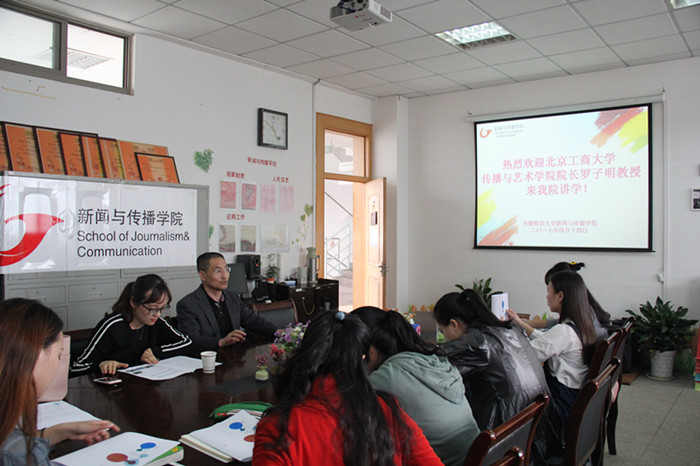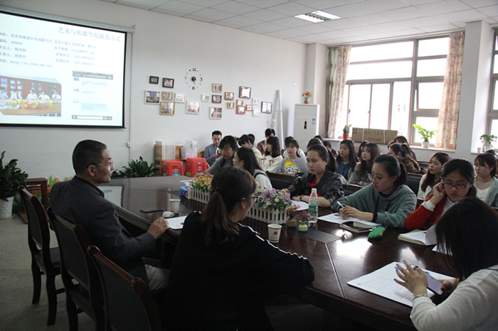 4月14日下午4点,北京工商大学艺术与传媒学院院长、教授、品牌传播学者罗子明应邀来bat365在线中国登录入口进行考研宣讲,向参与聆听的学生细致耐心地介绍相关考研情况。2014级各专业共50名学生参与此次宣讲会,会议由院团委副书记孙月婷主持。