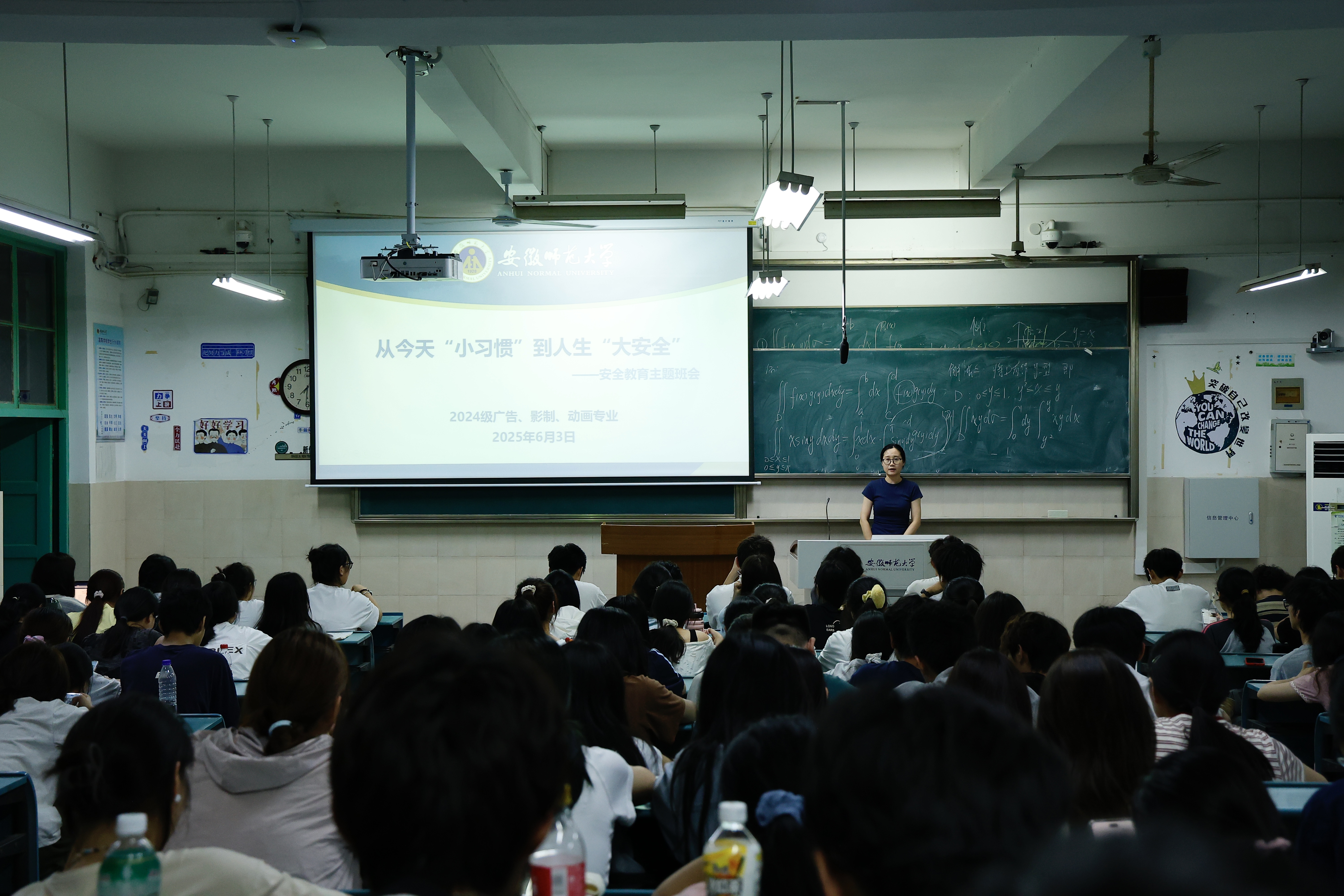 为切实增强大学生安全防范意识,保障学生生命财产安全,2025年6月3日晚,2024级广告学、影视摄影与制作、动画专业于2050305教室组织开展安全教育主题班会。本次班会由辅导员乌思琦主持,24级广告学、影制、动画专业全体同学参与。