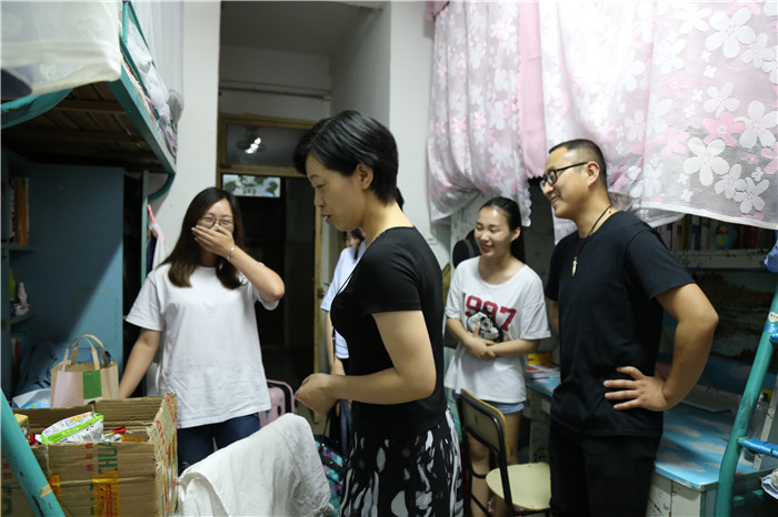 在各辅导员分头开始检查后,宋静随2015级三位辅导员老师,特别走访了大二女生寝室。从查看寝室的卫生状况、违规用电行为、物品摆放状况等方面着手,检查仔细。所查寝室大部分情况良好,但同时也存在一些寝室不够整洁的情况。查寝也是一次促进学生纪律规范的过程。检查中,宋静和辅导员们对安全卫生情况较好的情况进行了表扬,对个别问题较多的寝室进行了安全教育和引导。正值端午佳节来临之际,宋静在走访寝室的过程中叮嘱同学们,留校同学一定要严格遵守学生宿舍管理规定,安全文明地度过假期,除此以外,在节假日期间一定要注意防火防盗等。“提前祝大家端午节快乐。”在离开寝室时,宋静笑着和同学们说。