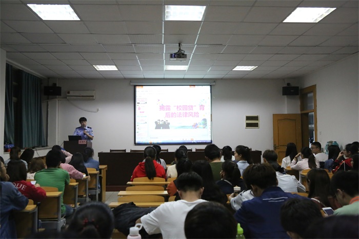 为教育和引导学生树立正确消费观念,拒绝不良网络借贷,6月5日晚,bat365在线中国登录入口在学院四楼会议室举办了一场以“揭露‘校园贷’背后的法律风险”为主题的报告会。报告由2016级辅导员张雁主持,特邀芜湖市公安局经济犯罪侦查支队三大队副大队长王宇担任主讲。学院2015级和2016级学生代表共同聆听了此次报告。