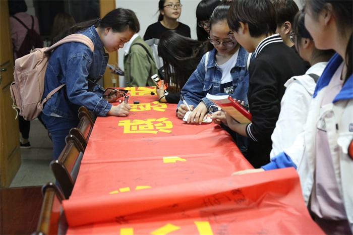 本场报告思路清晰,内容详实,赢得了现场同学的热烈掌声。报告结束后,各位同学分批依次上台在学院特制的关于“校园贷”风险防范的横幅上签名,以示自己抵制不良网贷的坚定决心。