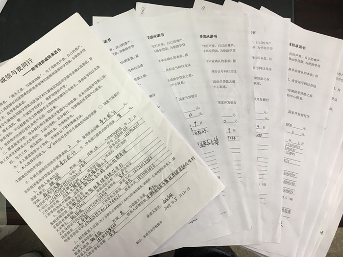 为了将诚信和感恩意识内化于心外化于行,唤醒学生的自我教育和自我完善意识,把学生培养成一名具有讲诚信、知感恩、树自强的高素质大学生,塑造优良的班风、学风。bat365在线中国登录入口各班级内部开展诚信主题班会,不仅仅把落脚点放在诚信还贷上,更是在“诚信立人”上。临近期末考试,班会从诚信考试入手,讲述诚信考试的重要性,提高同学们的诚信意识,认识非诚信考试的危害。2017届毕业的班级,由办理助学贷款的学生共同填写了助学贷款诚信承诺书,承诺在规定时间内做好还款工作。