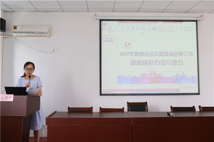 最后,孙月婷对今天的暑期社会实践培训会进行总结发言:“对一个团队而言,摄影摄像应该说是非常重要的,团队的图片和视频素材一定是团队宣传乃至社会实践树立形象的一个极其关键的手段。同时,团队的资料保存应该得到高度重视,实践队员图片和视频的记录也一样不可缺失。希望大家能够从今天的培训会中有所收获,有所思考,培养一双‘新闻眼’,拍摄更多高质量的作品。”