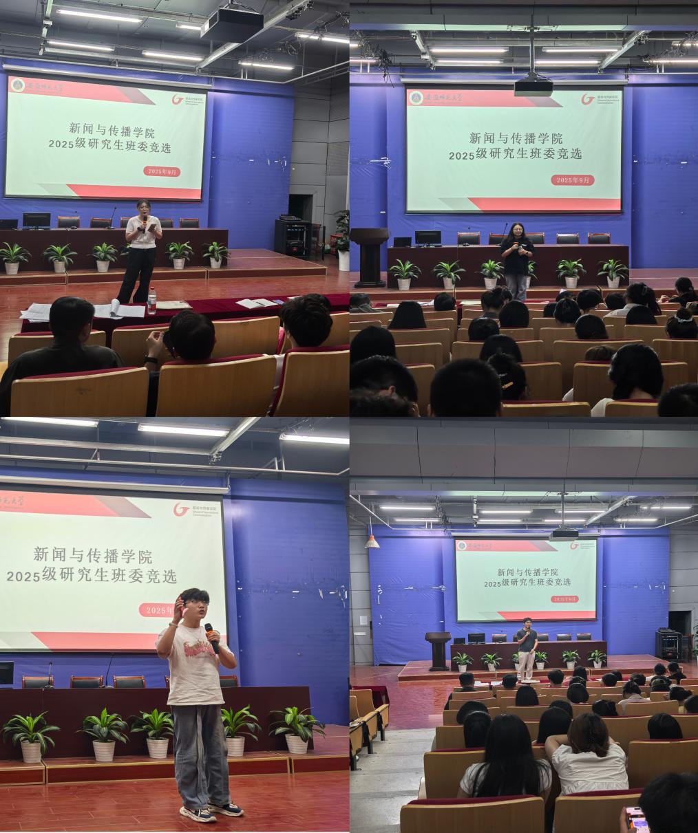 在最后的班委竞选环节中,同学们踊跃参与,积极展现自我。大家依次上台发言,结合自身的专业背景与实践经历,表达服务班级、助力同学的真诚愿望。现场气氛活跃,掌声不断,这也展现出2025级研究生们饱满的热情与蓬勃的朝气。