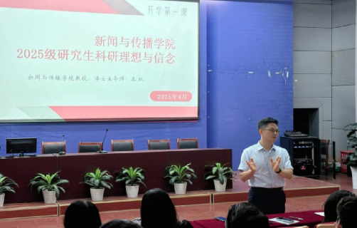 学院科研副院长秦枫教授围绕“科研理想与信念”的主题,为全体2025级研究生讲授“开学第一课”。他对研究生提出了三个期待:一是深度实践,开展田野调查或深度访谈,提升专业素养;二是掌握核心技能、掌握一项核心竞争力(如数据分析、视频剪辑等),但应树立“以人为主体”的技术观,避免过度依赖生成式工具,要严守学术诚信;三是成果产出,应注重知识积累与学术训练、强化艺术创作与实践转化能力。