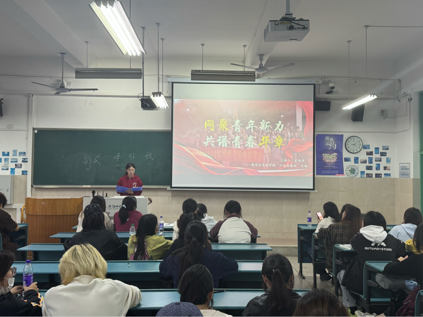 10月16日下午,2024级网络与新媒体专业在2040402教室举办了一场以“网聚青春新力,共谱时代华章”为主题的学年总结汇报会。会议由班长司雨华进行汇报,全体同学参与。