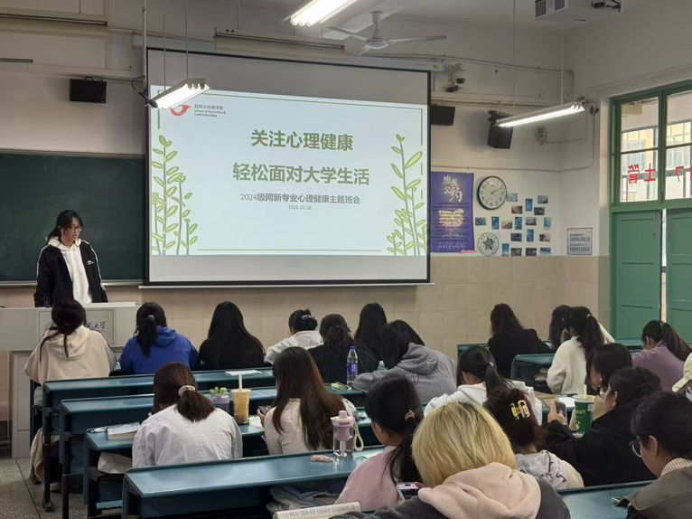为增进同学们的心理保健意识,掌握有效的心理调适方法,10月28日下午,2024级网络与新媒体专业在2040402教室举办了一场以“拥抱阳光心态,筑牢心理防线”为主题的心理健康班会。本次班会由辅导员王旭主持,全体同学积极参与。