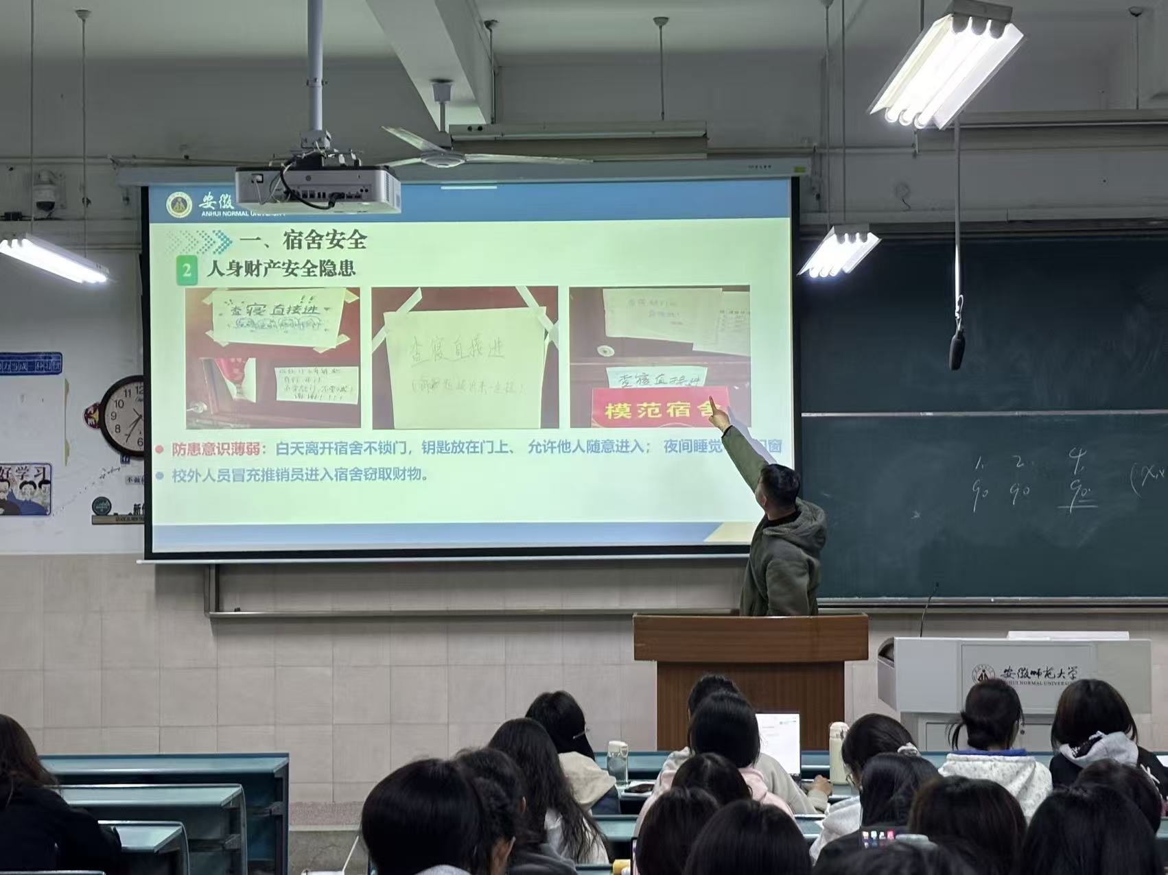 会上,刘成俊分别围绕宿舍安全、实验室安全、交通安全、防范电信网络诈骗等方面进行讲解。他强调,今年的11月是一个关键月份,既是校园消防安全教育月,又是学校实验室安全月,还是秋冬交替季节变换月,仍是“双11”网购消费“狂欢”月,他希望同学们提高安全防范意识、自觉遵守校纪校规、提升防诈骗能力,共同维护安全、和谐、稳定的校园环境。