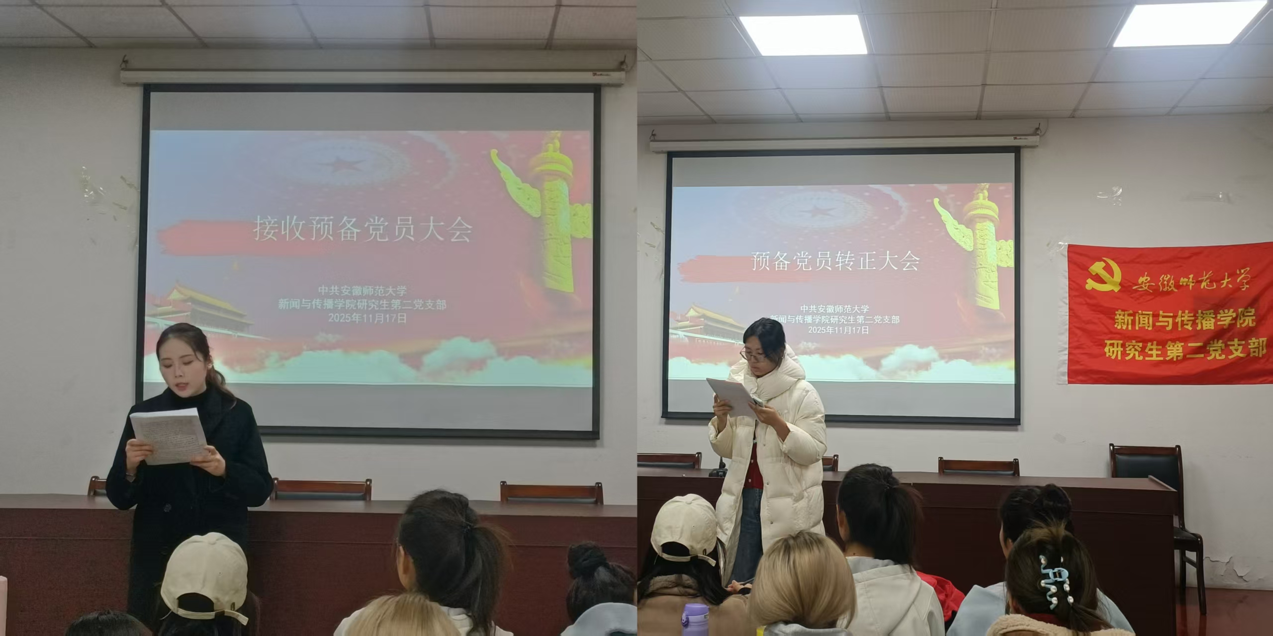 会议在庄严的氛围中开始。支部书记张伟同志首先报告了与会情况,随后刘欣悦、王雅琪、纪薇唯、倪健、傅婧杰五位发展对象依次汇报了自己对党的认识、入党动机、个人履历及现实表现,清晰阐述了自身在思想、学习、工作中的成长与感悟。入党介绍人详细介绍了发展对象的培养考察情况,支部委员会宣读了对发展对象的政治审查报告,认为其符合预备党员接收条件。与会党员围绕发展对象的综合表现展开充分讨论,提出意见建议。经无记名投票表决,大会一致同意接收刘欣悦、王雅琪、纪薇唯、倪健、傅婧杰五名同志为中共预备党员。新接收预备党员代表作表态发言,承诺将以入党为新的起点,加强理论学习,锤炼党性修养,立足专业所长,在新闻传播领域践行初心使命,争取早日成为一名合格的共产党员。