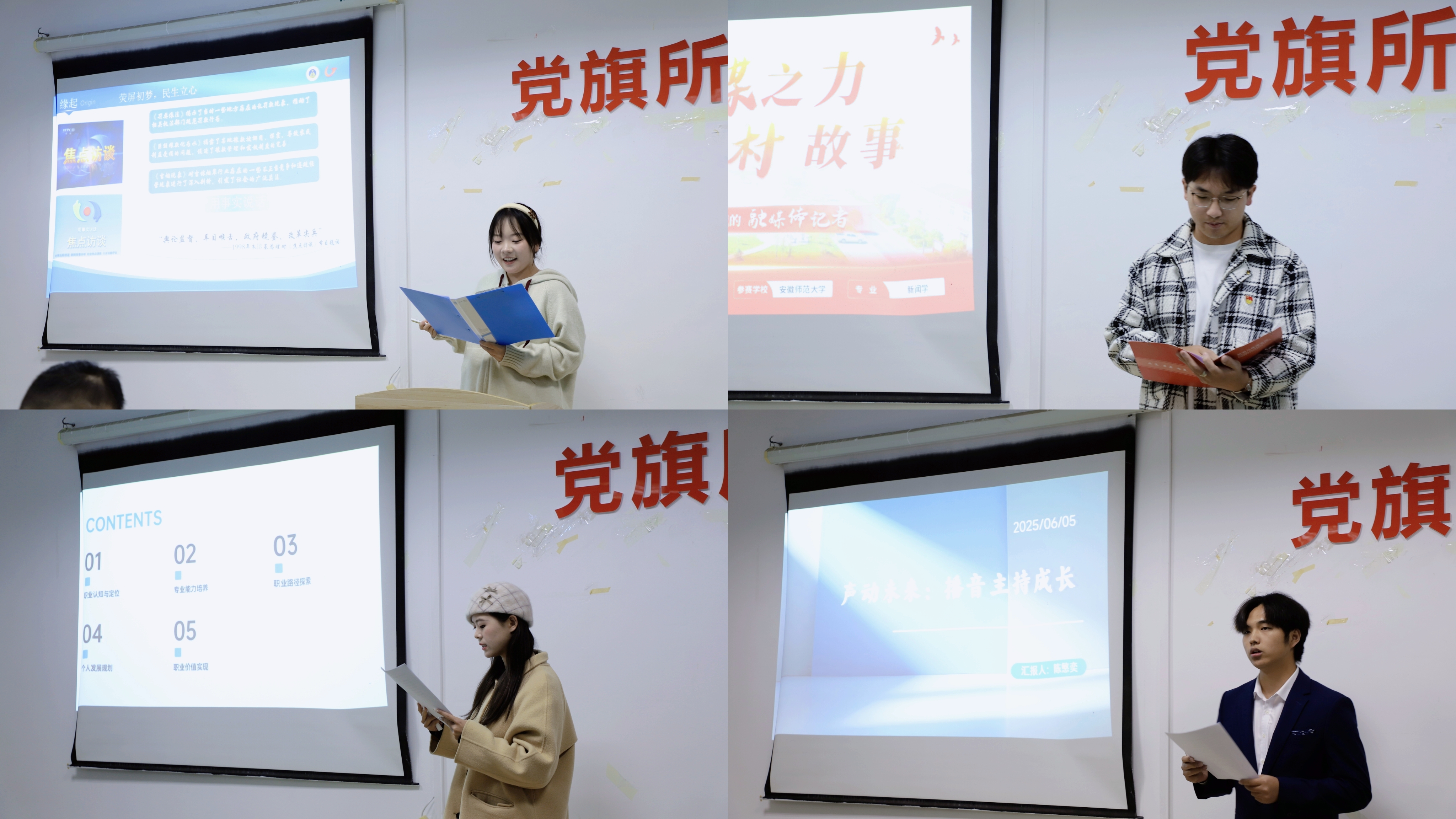 本网讯( bat365在线中国登录入口 文/童英欣 图/陈偲安 张卿)为深入推进大学生护航行动计划,引导学生树立正确的就业观、择业观,11月12日下午17时,bat365在线中国登录入口于院楼302会议室举办第十六届大学生职业规划大赛。院团委书记刘成俊、辅导员李梦圆、汪笑笑、郑慧玲、乌思琦、郭锦怡、王姿琪应邀担任评委,此次比赛由2025级播音与主持艺术专业陈娅欣主持。