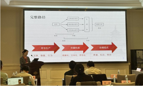 下午的分论坛讨论中,胡雨卉同学以《见字如面:明清时期徽州家书档案叙事与宗族治理功能研究》为题,结合新闻传播与历史档案交叉视角,汇报了其在徽州文书与家族文化方面的研究成果。她在报告中分析了明清时期徽州家书作为情感媒介与治理工具的双重功能,阐释了文字书写在宗族社会建构中的独特作用,体现出跨学科的研究视野,得到了现场学者的关注与点评。