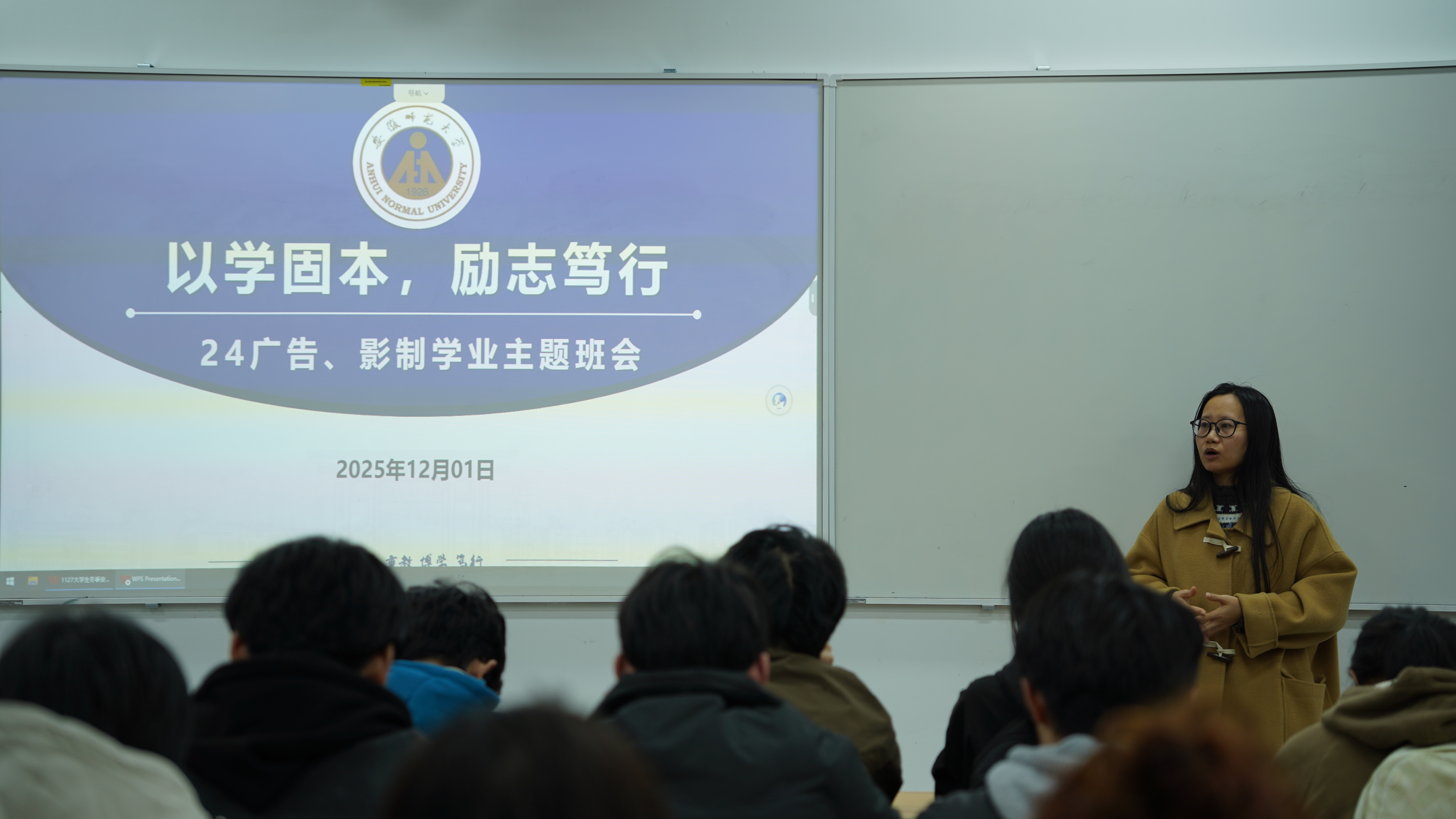 为引导学生明确学业方向、提振学习状态,12月1日,24级广告学、影视摄影与制作专业召开“以学固本,励志笃行”学风建设主题班会,辅导员乌思琦围绕课堂表现、学业规划、行动落实与考试纪律等内容,与学生展开深入交流。