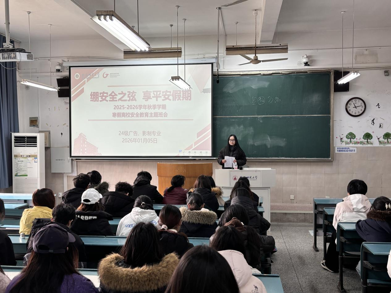 为切实做好学生寒假安全教育工作,引导同学们度过一个安全、充实且有意义的假期,1月5日,2024级广告学、影视摄影与制作专业召开了“绷安全之弦,享平安假期”安全教育主题班会。会议由辅导员乌思琦主持,2024级广告学专业和影制专业全体同学参加。