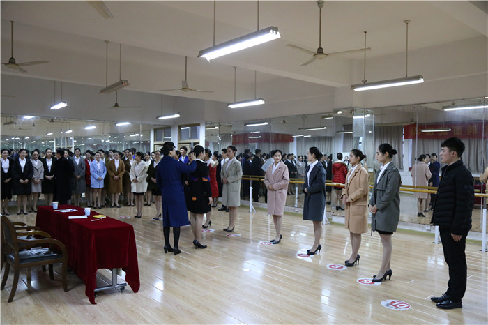 宣讲会上,王伟主讲一些有关厦航公司的发展历程,人才选择,培养方案以及公司的一些特色和福利。会议开始,王伟首先介绍了厦航的发展历史。创业之初,厦航缺兵少粮,只有7人组织成立,然而,现在它已经成为15000人的庞大军团。在北京、杭州、湖南等地有5个分公司,如今也早已成为全国2000家航空公司的前四十强。厦航以“一鹭高飞”“海阔天空”为自己独一无二的标志,对空姐的要求也始终秉持着“用真诚服务旅客,用真心留住旅客,用真实汇报旅客,用真情感动旅客”、“六勤五心四美三不怕”、“三米之内有微笑,一米之内有问候”的原则,用微笑带给旅客最真挚的的服务。王伟的讲话结束之后,宋柯鼓励空乘学子踊跃提问。在这些大三学子中不乏有已经参加过面试的人,虽然失败,但都收获了初次面试的经验。失败总有理由,学生们则主动将自己在第一次面试中遇到的问题提了出来,王伟针对这些问题也给了详细的指导。紧接着李经理作为前辈,也给了在场的后辈们一些有关站姿、手势、走姿等方面的建议,并亲自上台向同学们展示了标准的站姿,同时强调在走路时要有自信,不避开他人的目光,保持微笑,并形象地说微笑是最有利的武器。紧接着,所有人到达了形体房进行面试。第一轮进行十人一组的选拔。通过听口令做动作,回答问题来筛选,第二轮则是一对一的指导并进行自我介绍。与第一轮相比,第二轮更加仔细。