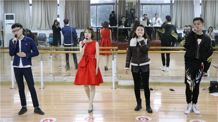 双迎晚会必然少不了院舞蹈队的精彩表演。在《皖风徽韵,大美芜湖》中十二位娇俏少女,舞姿婀娜,笑靥如花,和着轻柔的旋律,跳出芜湖的芳华,舞出江南的韵味。孙月婷针对这个节目强调保持队形格外重要。而在另一曲《山川河,民族魂》中除却了女子的娇柔之美,更有男儿的阳刚之姿,两者结合,更有韵味。2015级新闻班同学在《走过2016》中高喊出“2016我们离梦想很近,2016我们愿中国更有力,更前行”的美好祝愿。联排最后全体歌唱类节目人员共同合唱了一首《我的梦》。“别以为失去的最宝贵,才让今天浪费,我的梦说别停留等待……”唱出了正值青春勇敢追梦的心,把握自己命运的坚定信念。
