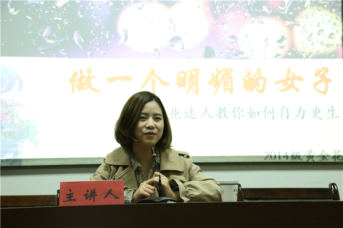 晚上,院学生会特意邀请14级广告学黄金花,在院楼四楼会议室,做了了一场题为《“做一个明媚的女子”——创业达人教你如何自力更生》的讲座。来自学院各专业的学子共同聆听了此次讲座。黄金花作为女大学生微商创业带头人,是校园内响当当的“创业达人”。她曾获评芜湖市十大女杰提名和芜湖市市级“三八红旗手”称号,而今年她又获得安徽省“三八红旗手”称号。她成功发起的校园奶茶品牌乐芙兰的众筹项目,如今已正式落实。
