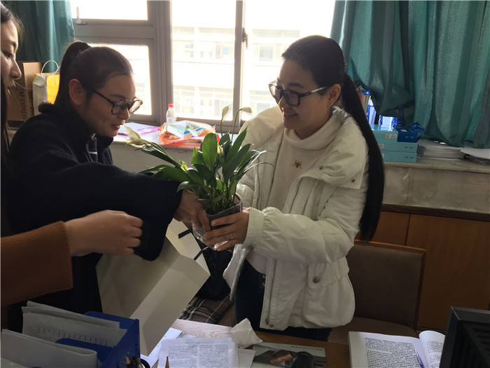 上午,学院学生会女生部的同学们给学院部分女教师们送去了精心挑选的绿植,并齐祝敬爱的老师节日快乐。生机勃勃的绿植承载着新传学子对女教师们的敬佩与祝福,意外的惊喜也让老师们开心地提前过上了节。
