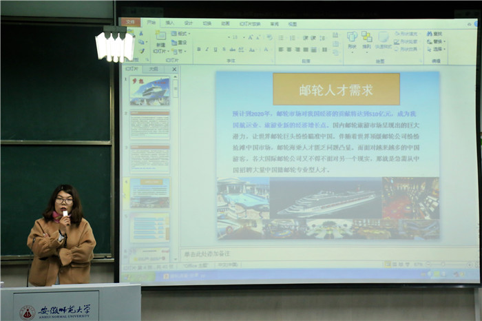 天津格雷特国际船舶管理有限公司以中国北方最大的航运港口天津港为依托,与多家船舶企业保持着密切的合作关系。 会前,该公司的负责人播放了一段关于邮轮生活的纪录片,让在场的学生通过影像记录了解邮轮工作的工作环境、薪资、休假等基本情况。会上,招聘人员首先向大家介绍了邮轮事业的发展史以及中西方邮轮事业的不同之处。接着,介绍了此次招聘的岗位需求以及面试的流程,并强调面试通过后需参加培训考取海员资格证。招聘方表示,邮轮事业具有很好的发展前景,是不错的就业选择,希望大家选着海乘行业作为自己的未来职业。最后进行了现场互动,招聘方向大家答疑解惑,解决问题,招聘方与学生面对面的交流接解决了学生心里的的疑惑。会后,招聘方对现场的学生进行了逐一面试。 (文/任夏苹 图/石景威)