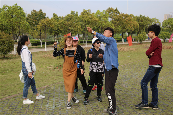清明刚过,正是放风筝的大好时节,本次素质拓展活动的第一个游戏就是放风筝。在放风筝游戏中,学生会同学们以部门为单位,齐心合力,纷纷将美丽的风筝送上了天空。霎那间,湛蓝的天空被各色迎风而舞的风筝装饰,彩带飘飞,吸引了很多同学们的注意,他们也纷纷在感染下走到室外,自觉加入放飞风筝的人群,领略非同凡响的风筝艺术的魅力。