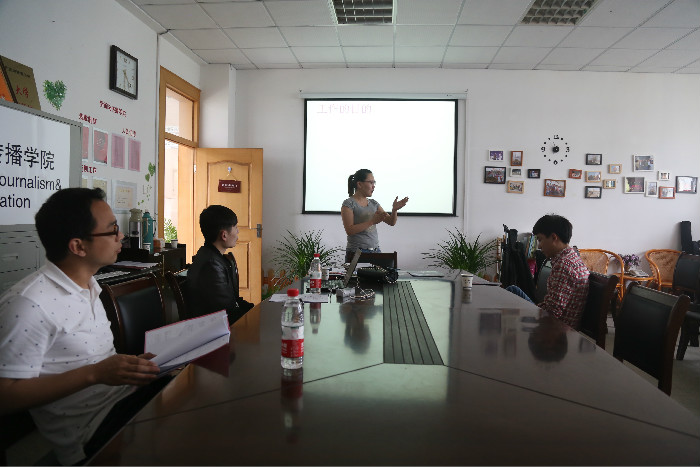 招聘会伊始,晴朵就当代大学生的工作目的与在座同学们进行了交流,从工作的选择、互联网的发展、平台的创建方面介绍了当前的网络发展现状,提出未来互联网的发展趋势。接着,她借PPT向同学们展示了欢聚网红商学院的概况。之后,晴朵针对应聘者关心的招聘岗位、晋升培训等话题做了详细说明,一一答复了同学们提出的有关工资待遇、工作内容、员工培训、派遣出差等内容的疑问,并就求职经验以及求职意向与同学们展开了愉快的交谈。她表示,欢聚网红商学院一直崇尚“我们就是一家人”的理念,坚守“快乐、诚信、真诚、欣赏、感恩、忠诚”的标准,因此也对职员提出了相对较高的要求,希望应聘者们做好充足的准备,从容自信,应对面试。除此之外,她也倡议大家踏实勤勉、积极充电,并祝愿新传学子在接下来的面试环节取得成功。