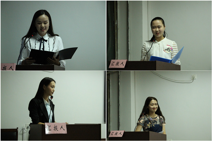 答辩会上,各支暑期社会实践团队依次上台汇报并进行现场答辩:首先由申报团队负责人围绕所属团队基本概况、实践准备、活动组织、经费预算等方面在3分钟的时间内以PPT课件形式进行现场汇报,然后由评委老师根据汇报内容提出的问题进行答辩。以“弘扬红色旋律 践行青年使命”为主题的赴黄山暑期社会实践团队从两个方面进行介绍:一支“承”的团队,传承并发展2015年bat365在线中国登录入口赴革命老区“寻迹峥嵘岁月,勾勒中国脊梁”暑期社会实践团队的仪式以及其敢于探索、积极进取的精神;也是一支“新”的团队,从拜访老兵到老党员,新的启程,新的成员,新的成果。以“寻党情筑青春梦,承匠心传中国魂”为主题的赴凤阳暑期社会实践团队从“为什么把目光聚焦凤阳、如何将关注践行为行动、如何将行动凝结为成果、如何将设想转化为现实”四个方面出发,结合建党95周年、长征胜利80周年的大背景,去探访那一群历经革命、建设、改革岁月的优秀党员,树立一种榜样、传承一种精神、创新一种模式、寻迹一段岁月。 以“青春情系红色故土,学子聚力老区发展”为主题的赴安庆市宿松县暑期社会实践团队:围绕义务支教,联动课堂育人;寻访红色故土,勾勒皖式建党;助力精准扶贫,对话大学生村官;调研古皖文风,讲述城市文化;建功基层建党,歌颂丰功伟绩;搭建爱心桥梁,联络企地共建。以“立足芜湖,反映城市商业困境;还原真实,调查国家规划盛行状况”为主题的赴芜湖调研“经济大常态下的芜湖商业地产现状”暑期社会实践团队,围绕芜湖市商业地产的发展状况进行新闻采访、数据分析、市场调研、纪录片制作,深入探究我国城市发展的真实面貌,用大数据来解析芜湖商业发展,用新媒体进行宣传,更好地追求新闻专业主义。爱心中转站赴芜湖调查社会养老问题暑期社会实践团队,以四个数据开头,从“承接社团优势、变‘广撒网’为精准服务,创新实践模式、变‘输血’协作为‘造血’服务,变通实践方法、变浅尝辄止为深度服务”三个方面去探究人口老龄化下的芜湖市的养老问题。在答辩人汇报完成后,评委老师们分别从可行性、实效性和创新性等方面给予相应的指导与建议。