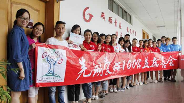 据悉,芜湖“爱心100”公益慈善协会初创于2014年10月。两年来,协会围绕着“为爱而行、将心注入、快乐公益、温暖江城”的服务理念,团结江城青年投身公益事业。截止2016年3月,协会已完成公益慈善活动28次,筹集资金20余万元。目前,协会成员达150余人,以80、90后的青年人居多。协会成员呼吁每一个社会成员奉献出工作、学习及生活之余的宝贵时间,为爱而行,让更多需要帮助的人能够得到社会的关怀与支持,让我们所生活的城市可以更加美丽温暖。此次对接仪式上,芜湖“爱心100”协会为实践队服务的凤阳小岗村捐赠首批价值4000块的生活物品,全部来自于在协会志愿者们的爱心募捐,共募集到崭新的书包、文具、棉衣、笔记本、鞋等,由实践团队带往当地为贫困乡村学校的孩子们奉献爱心。