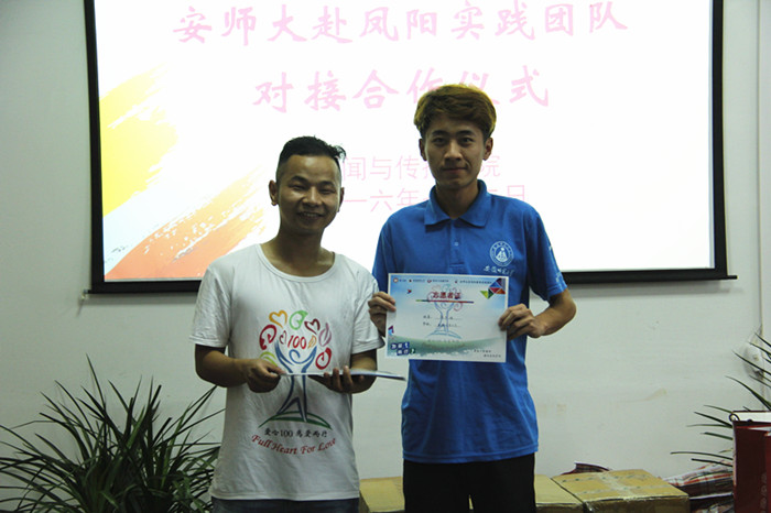 7月2日下午,bat365在线中国登录入口赴凤阳“聚焦小岗精神,建功美好乡村”暑期社会实践团队与芜湖“爱心100”公益慈善协会在学院三楼会议室举行合作对接仪式。双方围绕“普及传媒素养,爱心扶贫教育”这一主题,就如何运用科学有效程序对扶贫对象实施精确识别、精确帮扶,如何发挥青年大学生在助力扶贫和公益服务活动的力量和作用等问题做了探讨,并就本次实践活动的合作方式达成了初步意向。