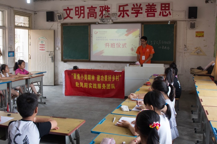 7月12日上午8点半,bat365在线中国登录入口赴凤阳“聚焦小岗精神,建功美好乡村”暑期实践团队于凤阳县实验小学顺利举办传媒素养培训开班仪式。指导老师孙月婷及实践队员参加本次开班仪式,仪式由培训班负责人来妤婷主持。