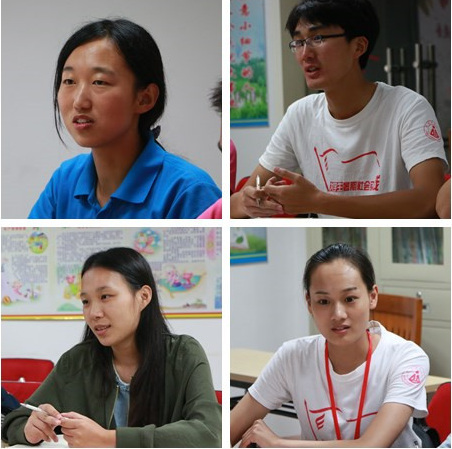首先成员们跟肖叶飞老师作了简单的自我介绍,包括在团队中的负责事项。随后队长刘成俊汇报团体的整体状况,团队主要围绕“抗洪”、“支教”和“黄梅戏”这三个方面开展各项活动。其次团队的采访报道组、摄影摄像组、文艺支教组、技术保障组及后勤保障组的负责人分别汇报各组近日来的活动成果。采访报道组分抗洪和黄梅戏两条线同步进行,从7月5日起一组队员就深入前线,去到五里乡、柳坪、坝头、北浴等主要的安置点进行志愿服务及采访;同时另一组联系文广新局的负责人、黄梅戏团和黄梅戏演员进行深度的人物专访。