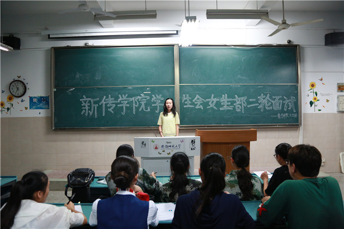 9月19、20日两天,院学生会迎来了此次招新的最后一场考核。院团委副书记孙月婷、院学生会主席团亲临现场,为各部门指导把关。此轮考核依旧采用面试方式,选手们在历经两轮考验之后,举止更加得体、言语更加流畅。面试中,评审团根据选手们的语言表达、反应能力、仪表体态和面试态度做出评审决议,确定最终学生会新部员名单。