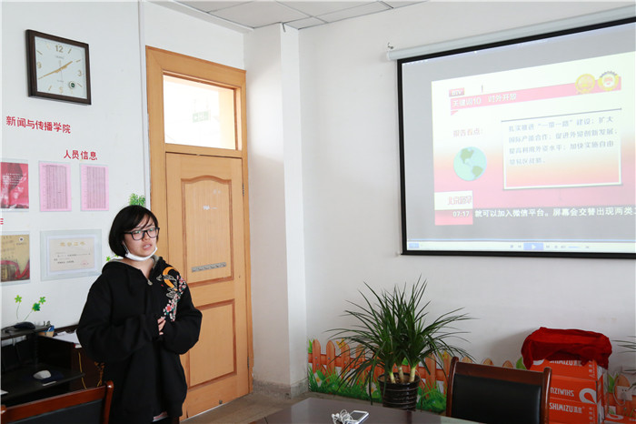 组织部副部长徐一丹为大家播放“政府工作报告”的视频,并做了简要说明,普及了两会基本常识。跟随新闻的分析与点评,在座同学们透过“保持6.5%-7%的经济增速”、“供给侧结构性改革”、“新经济”、“脱贫攻坚”、“政府自身建设”、“反腐倡廉”、“重拳治污”、“新型城市化”、“民生改善”、“对外开放”等十大关键词了解了政府工作报告中的重点内容。随后,同学们就教育、就业等与自身利益紧密相关的热门话题展开了互动交流,各抒己见,并且纷纷表示要做好典型示范引领工作,自觉履行学生干部应尽的责任与义务,积极带动学生会成员通过微信、微博和电视直播等多种方式参与到两会精神的学习、讨论和实践中去,大力提高学生会成员的政治素养。