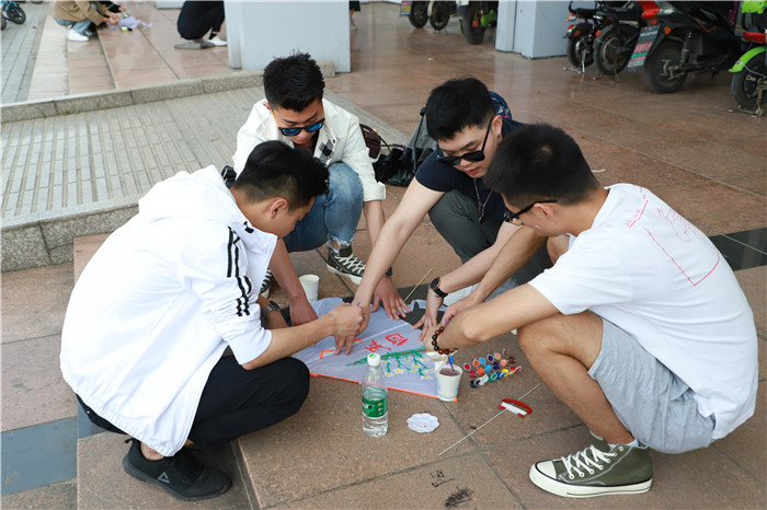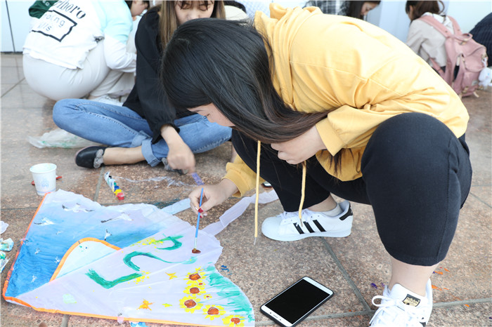 下午两点,参赛同学陆续来到现场签到组队并领取空白风筝和画笔,通过团队合作,在既定时间之内创作出风筝成品。在风筝DIY过程中,参赛选手充分发挥想象力,进行既符合主题而又不失大胆活泼的创作,一个个空白的风筝最后在选手们的手中变成了或艳而不俗、或简而不陋的“艺术品”。