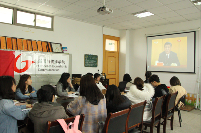 共青团员代表在观看过后纷纷表示深受鼓舞、深受教育、深受启发并展开热议。17网新专业宋诗雨认为,二十一世纪是中国人的世纪,习近平总书记指出中国青年是有远大理想抱负的青年、是有深厚家国情怀的青年、是有伟大创造力的青年,我们应该肩负起时代的使命,不负时代,与时俱进,坚定“四个自信”,记录伟大时代,讲好中国故事,传播中国声音,凝聚民族力量。17新闻2班王瞳认为,我们要牢记总书记在大会上给我们提出的6点要求,勇于担当民族大任。17摄影王玉洁认为,在五四运动一百周年之际,作为新时代的青年要有坚定的理想信念,扣好人生第一粒扣子,练就过硬的专业本领。18新传大类王瑾认为,要牢记总书记的嘱托,传承五四精神,更加深入的融入人民,从身边小事做起,融入祖国的大我和人民的大我,将为人民服务做实。
