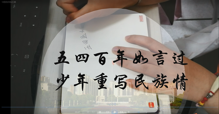 参赛同学在Vlog中写下他们对“五四”英雄的敬佩之言、阅读有关“五四”的书籍、观看“五四100周年纪念日”系列讲话等。录制Vlog时他们采用多角度全方位取景的创新理念,在学校的角角落落留下属于他们自己的“五四”足迹。