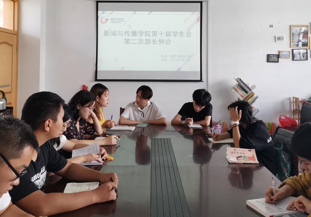 9月2日中午,bat365在线中国登录入口第十届学生会第一次部长例会于学院三楼会议室召开,院团委书记张雁出席会议。会上,张雁对新上任的主席和部长们给予了充足肯定和鼓励,她从自身的学生经历谈起,讲述了她对学生干部的认识,在感谢大家愿意去坚守这份岗位的同时,她也要求大家不负组织和同学们的期望,做出成绩做出贡献。新上任的四位主席依次做了自我介绍,重点就自己分管部门的工作做了安排。会议决定,延续院会光荣传统,自9月2日起,每周召开部长例会,总结上周工作,布置下周工作,将学生工作有条不紊的落到实处。