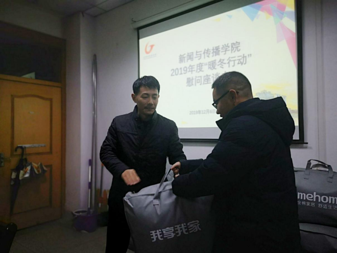 座谈会结束后,张师帅,宋静和刘熠一起给参会的每位同学发放了优质棉被。同学们纷纷向老师们表达了感谢,一位同学表示因为学院的挂念,感觉自己更加有了动力,以后会认真学习,提高自己的专业素质,不辜负这冬天里“暖暖的感觉”。