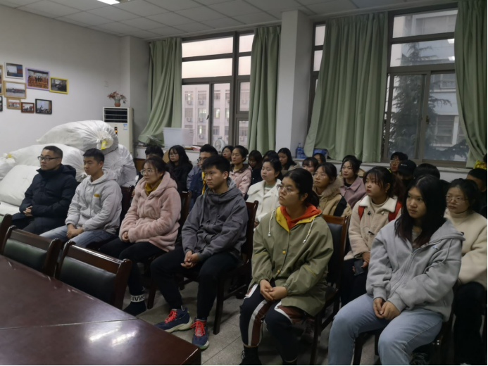 宋静在主持中向同学们介绍了学院资助工作的总体情况,将“暖春”“暖学”“暖途”等活动开展情况作了说明,重点阐述了“暖冬行动”的意义及做法。