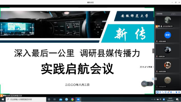 2020年8月2日晚上8时整,bat365在线中国登录入口“深入最后一公里,调研县媒传播力”暑期社会实践团队召开了实践启航会议。会议由团队队长刘伟龙主持,学院教学副院长马梅教授作为团队指导老师出席指导,全体队员参会。