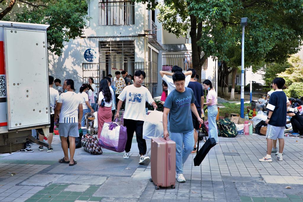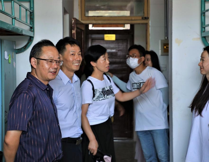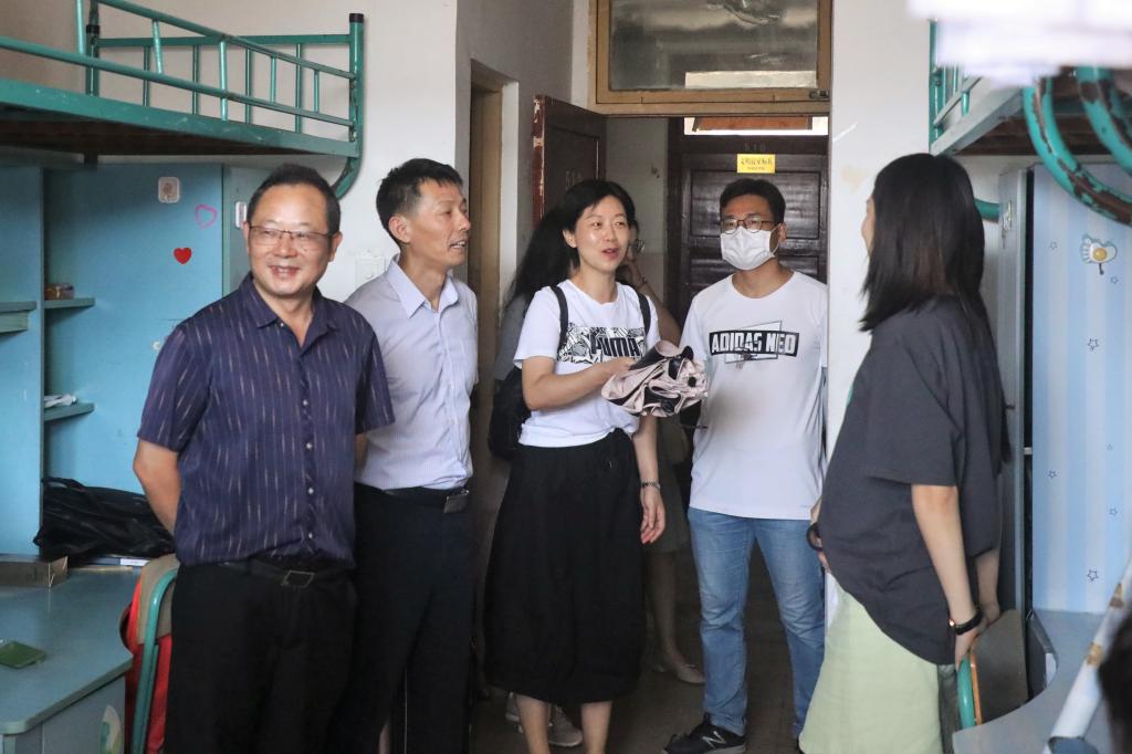 9月6日上午,学院党委书记张师帅、执行院长杨柏岭、党委副书记宋静、团委书记张雁,辅导员马星宇、王文君、李梦圆亲赴一线指导搬迁工作。领导、老师们亲切问候参与搬迁工作的学子们,并热情帮助学生搬运箱子、被子等。随后,张师帅一行来到学生们搬入的新寝室,了解寝室情况并询问同学们对于新寝室的满意度,鼓励学生装饰寝室、发展宿舍文化。张师帅叮嘱辅导员们要多余同学们沟通、交流,时刻关注同学们的问题和诉求,及时帮助解决;杨柏岭嘱咐辅导员们在学院可调用资源的基础上尽可能满足同学们的需求。