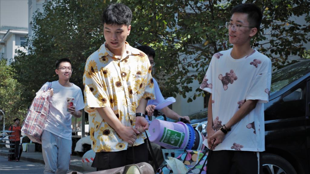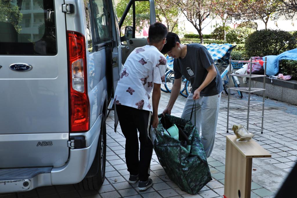 因运送车辆容量较大,学生每人打包速度不同,各班级采取男生志愿者帮助搬下楼运上车,女生自行商量是否参与此趟运送的方法。学生们互帮互助,让搬迁任务有条不紊的进行。