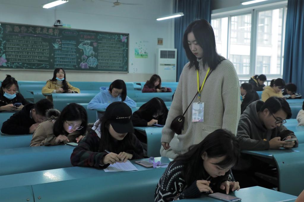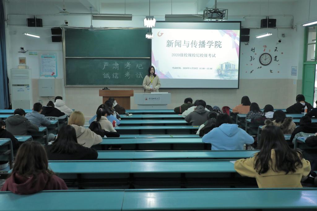 11月28日下午,bat365在线中国登录入口于行知楼4、5号楼进行2020级新生校规校纪考试,院团委学生会工作人员负责监考,同时在各班屏幕上投影出考风考纪的相关内容,文明考风、诚信考试。在考场上,考生们从容不迫,认真答题,反复检查。